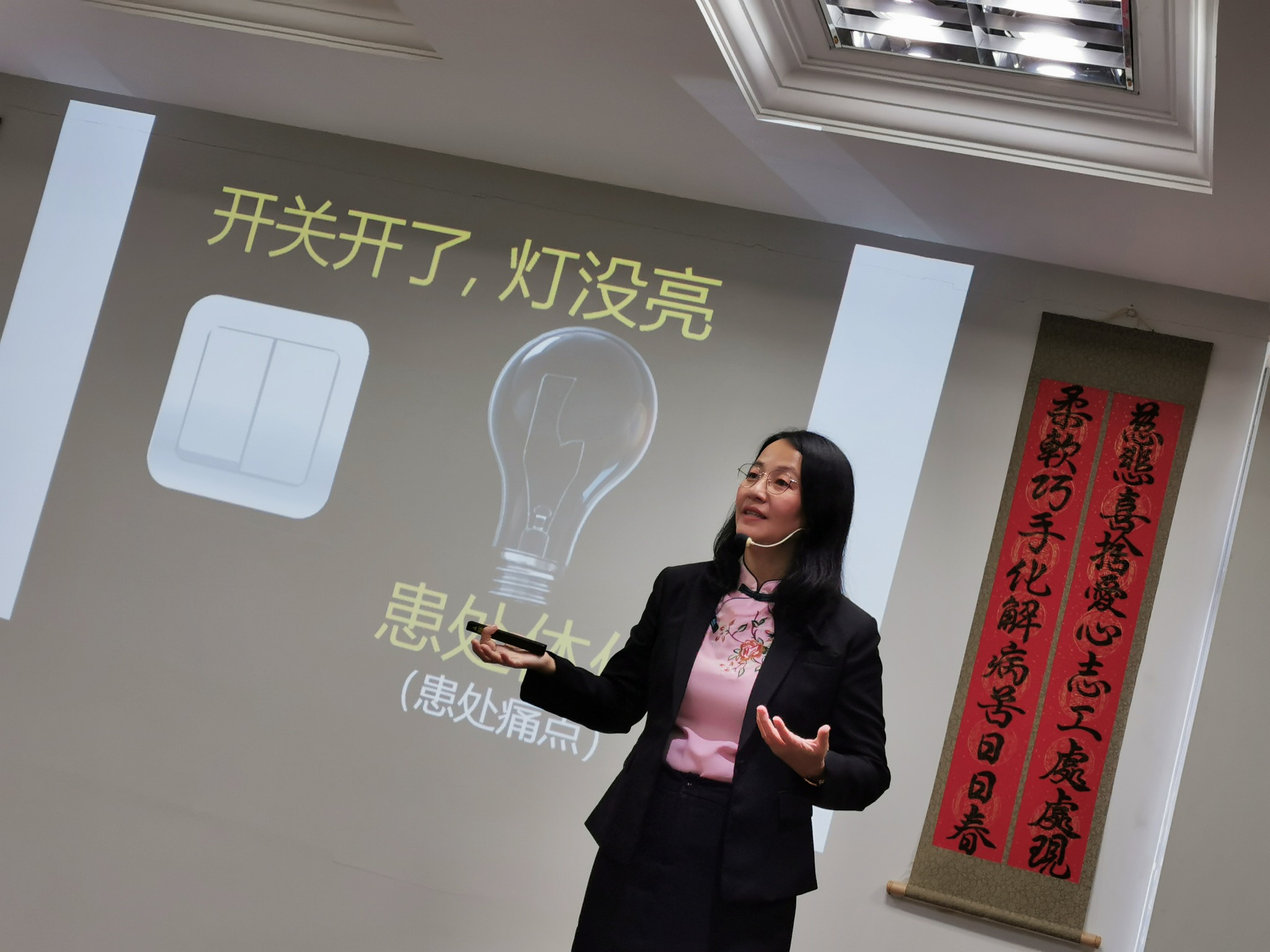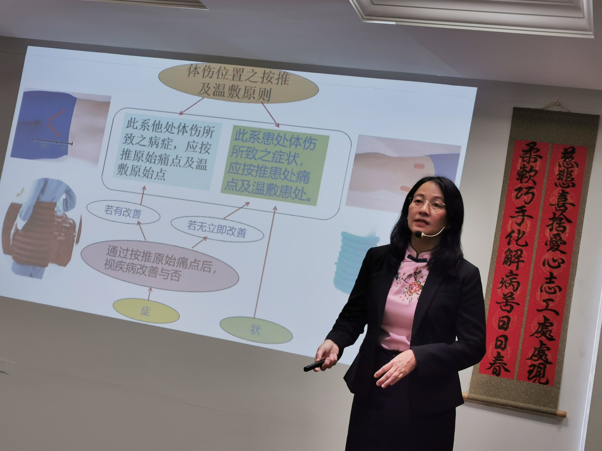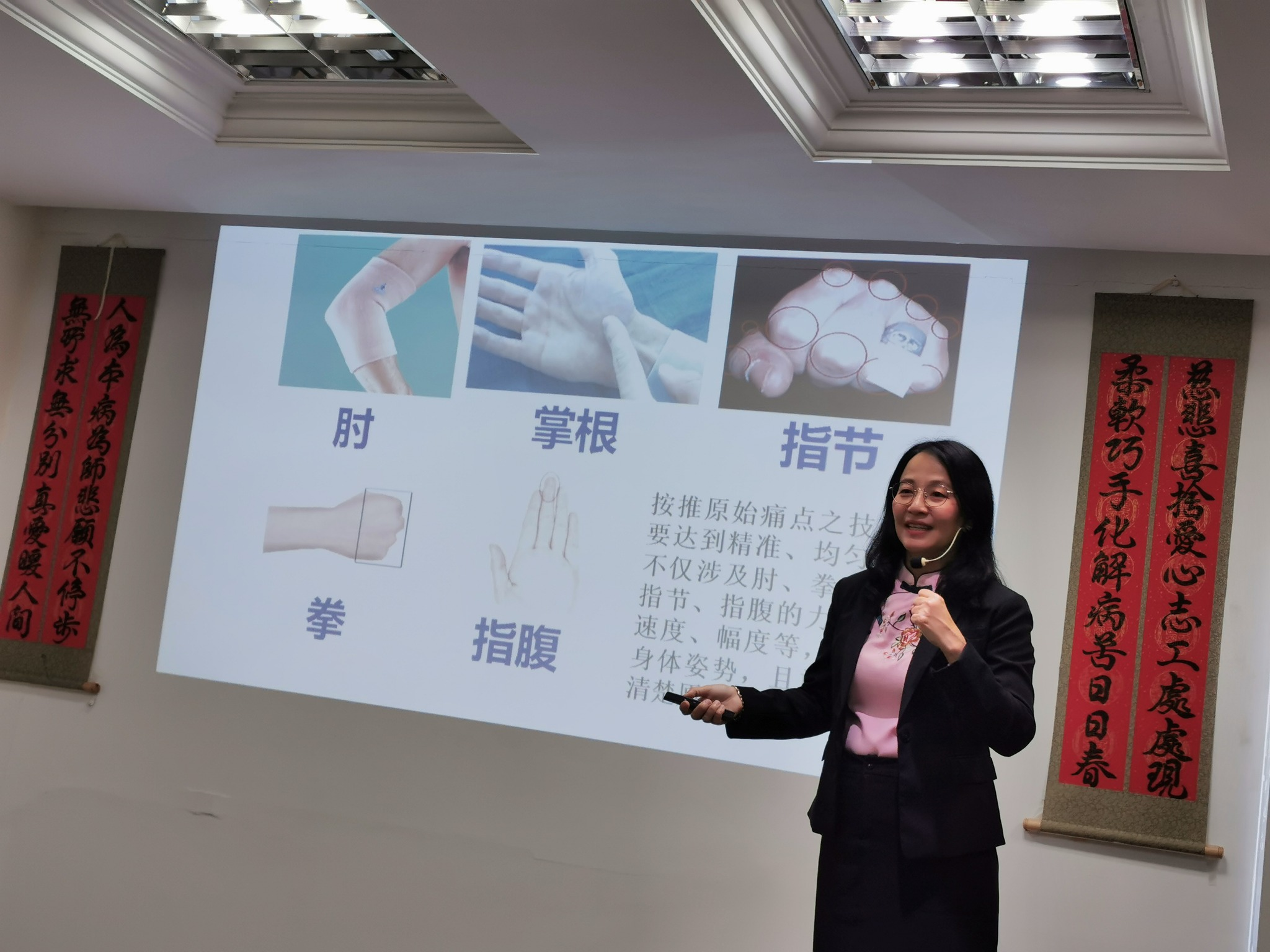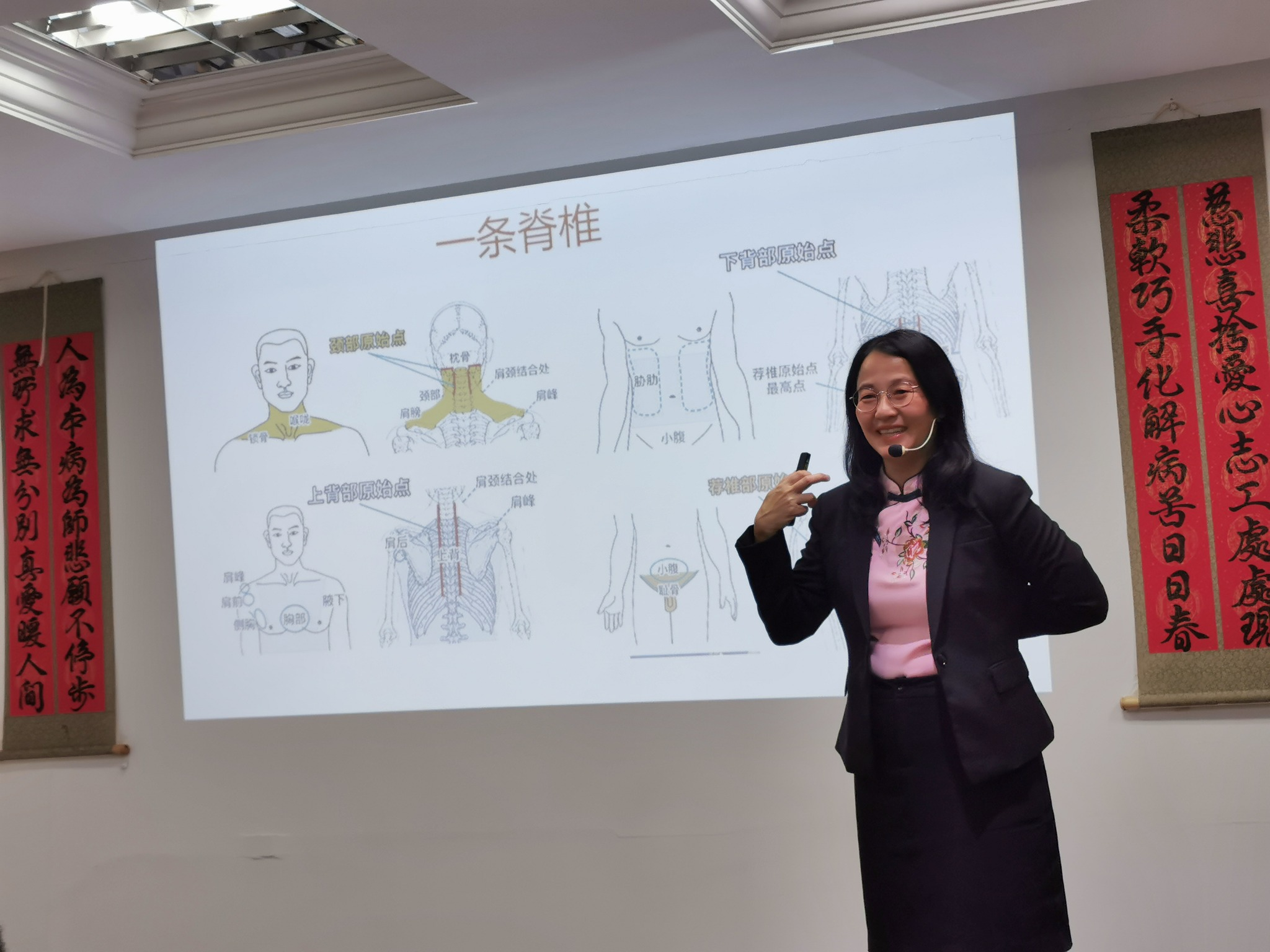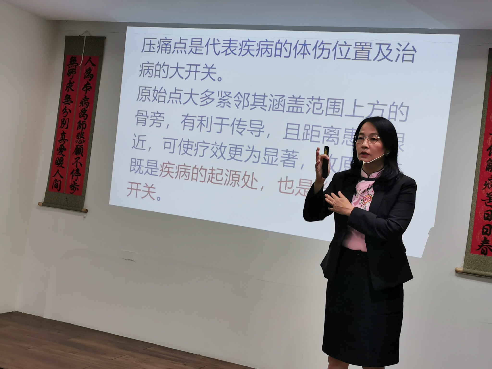 主持人通过生动的问与答方式, 让学员更加容易理解:只须知道疾病发生位置为何处原始点所涵盖,即可按推该处原始点,并从中找到需要处理的压痛点。