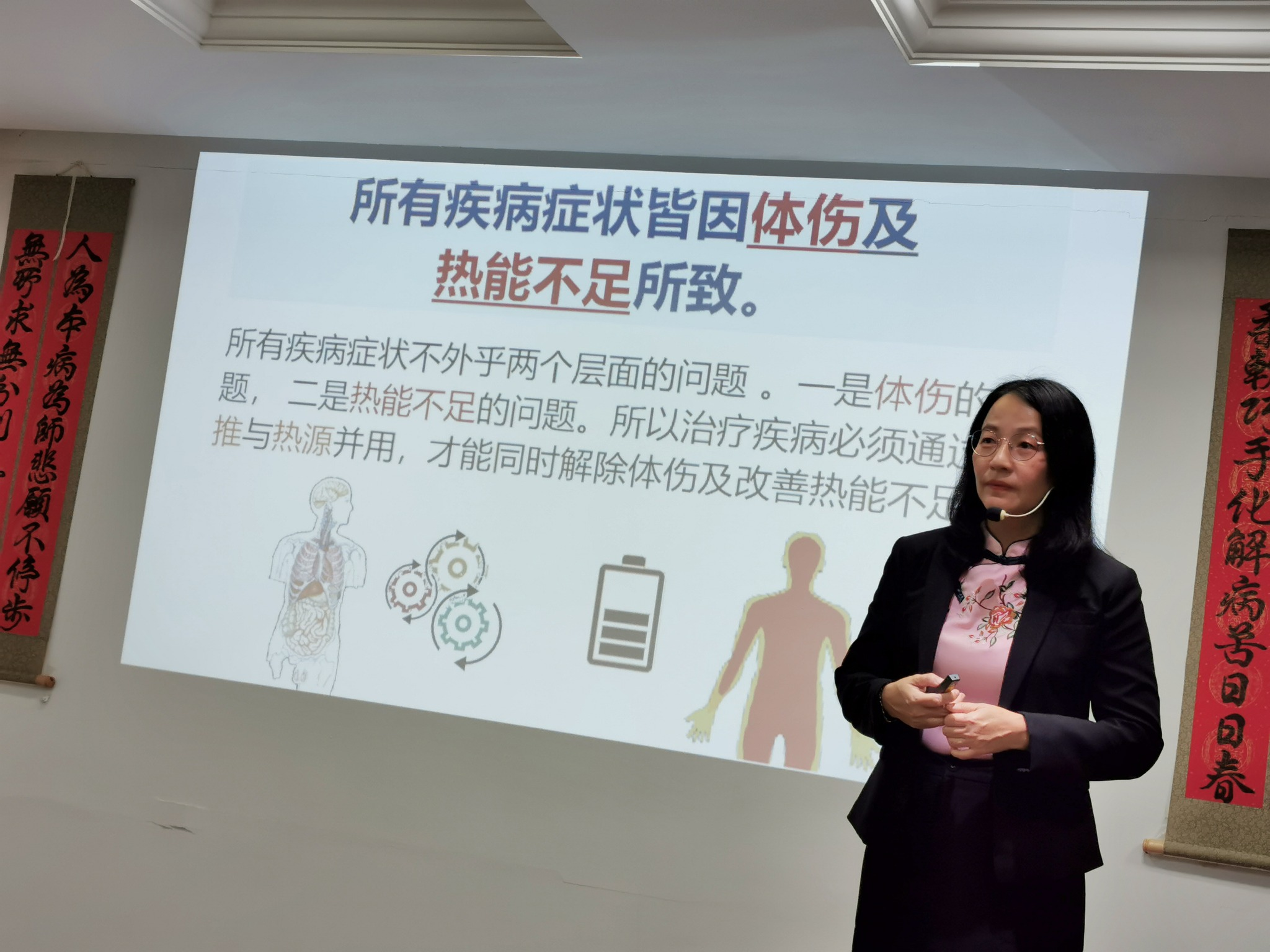 所有疾病症状不外乎两个层面的问题 。一是体伤的问题, 二是热能不足的问题。所以治疗疾病必须通过按推与热源并用,才能同时解除体伤及改善热能不足。