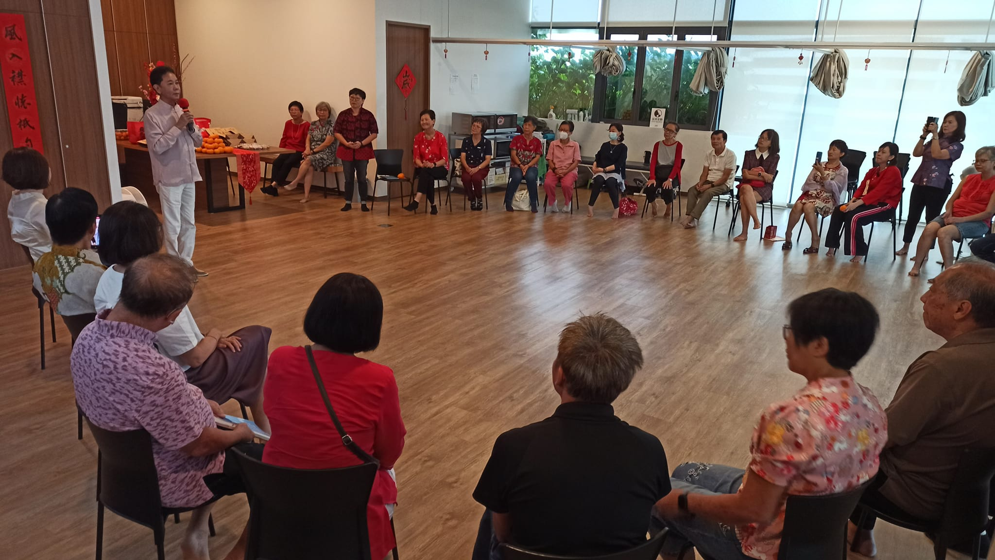 活动一开始,大家在社团会长张财源师兄的带领下,排列有序地向郭博士及夫人拜年并给予最大的祝福和感谢他们对原始点的肯定及支持。同时,郭博士也给在场的志工们鼓励和分享了他个人对原始点的看法,本身的经历及领悟到身体健康才是最重要的。