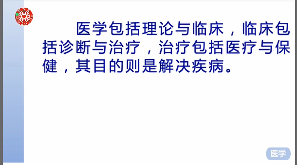 医学包括理论与临床,临床包括诊断与治疗,治疗包括医疗与保健,其目的则是解决疾病。