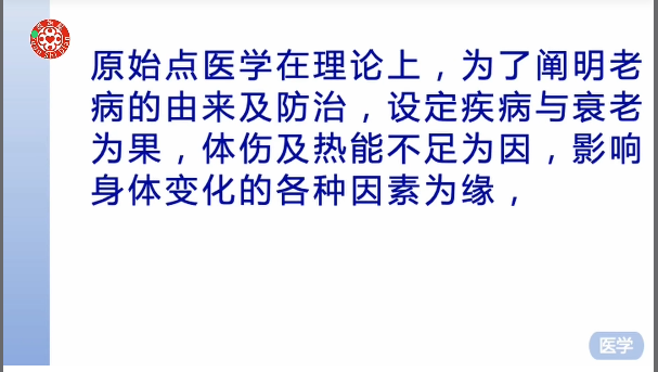 原始点医学在理论上,为了阐明老病的由来及防治,设定疾病与衰老为果,体伤及热能不足为因,影响身体变化的各种因素为缘。
