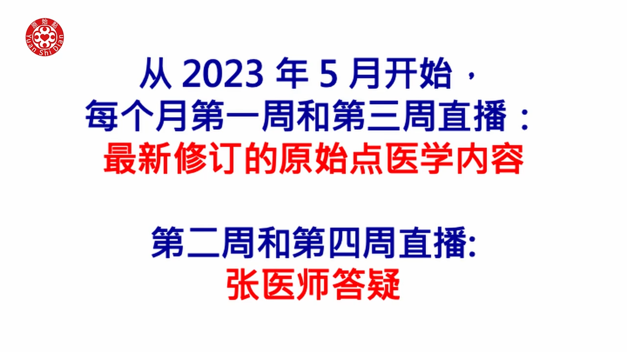 张医师的答疑 就播放到这里 我们2023年5月开始 每个月的第一周和第三周 会直播 张医师最新修订的 原始点医学内容 第二周和第四周 直播张医师答疑 好 那我们今天的直播 就到这里结束 谢谢大家