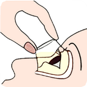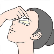 ⑥结束后低头,再把杯子取下来,并用毛巾将眼皮上的水珠擦拭干净。