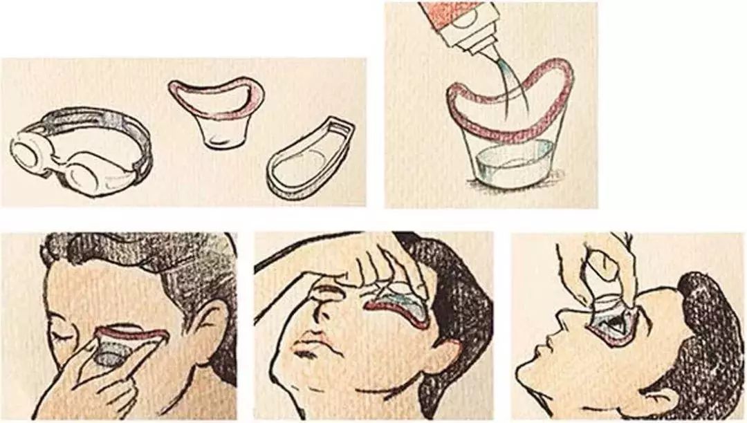①准备一个可以刚好贴合眼窝的小杯子或洗眼杯。(也可用游泳蛙镜)