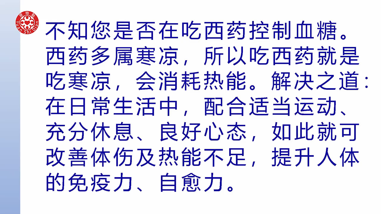 不知您是否在吃西药控制血糖。 西药多属寒凉,所以吃西药就是 吃寒凉,会消耗热能。