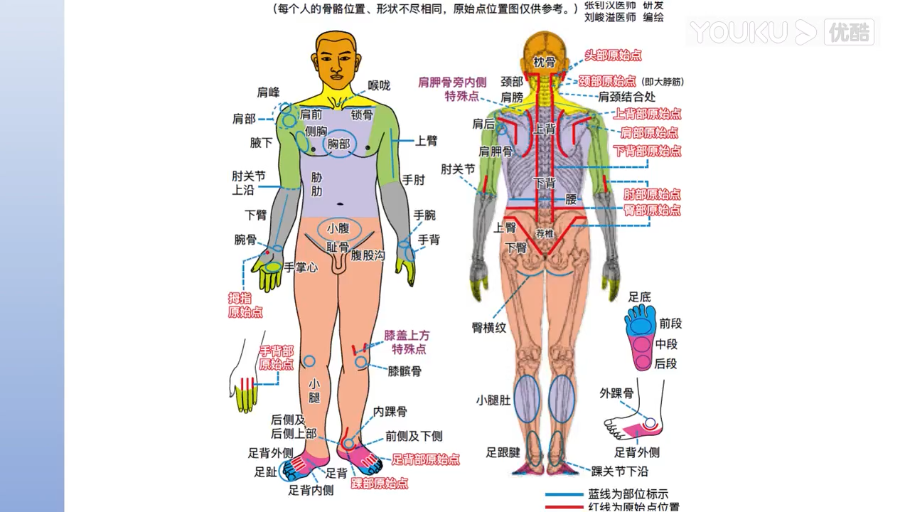 (00:41) 那我們現在來介紹臀部原始點 那臀部原始點 要跟各位先聲明的 跟過去的臀部原始點有一些變化 第一個就是 早期我們的臀部原始點就是v字型 那發現v字型還有薦椎 最重要是出現在薦椎出問題 因為薦椎本來是管臀部 臀部中間以下的 這一段是由薦椎來管 發現上面這裡也很多人痛 所以薦椎解決不了 而且薦椎對這裡的效果也有限 所以我這幾年已經很少用到薦椎了 那這一次來美國 我發現程經理 推薦的他自己長期在按推的時候 他發現