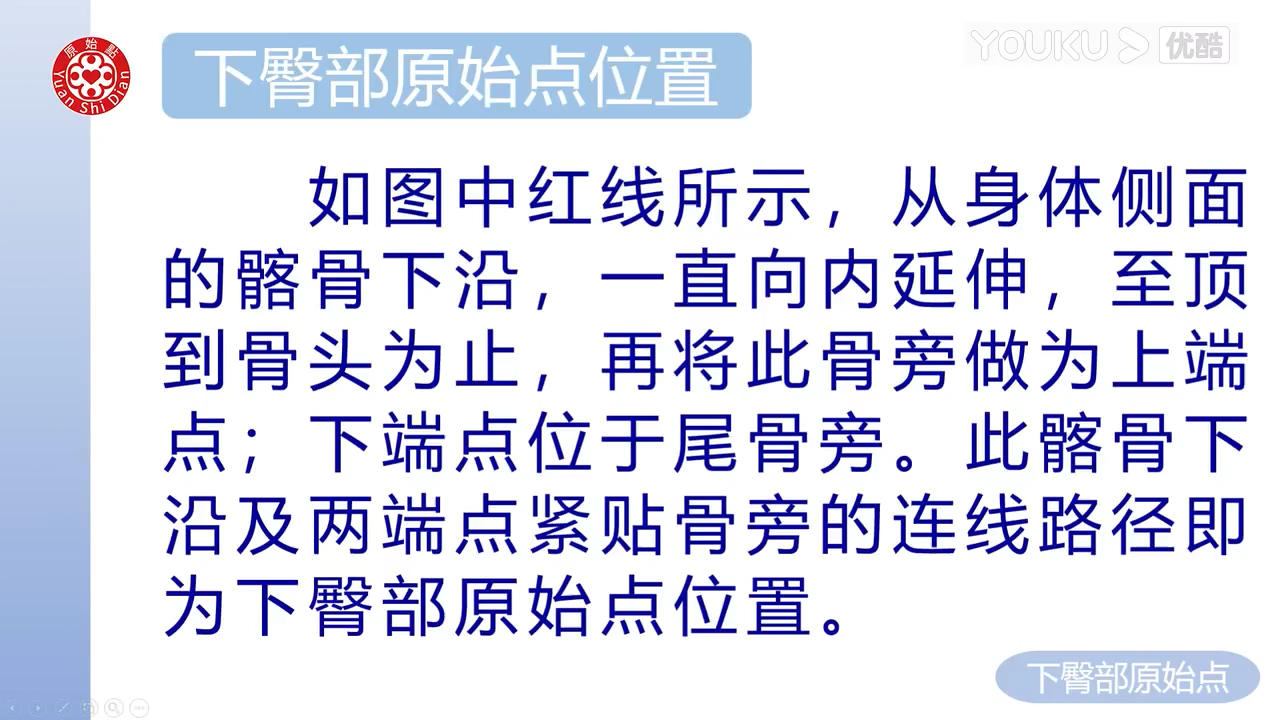 - 示范了按压臀部原始点的方法,包括旧的V字型和新的按法。