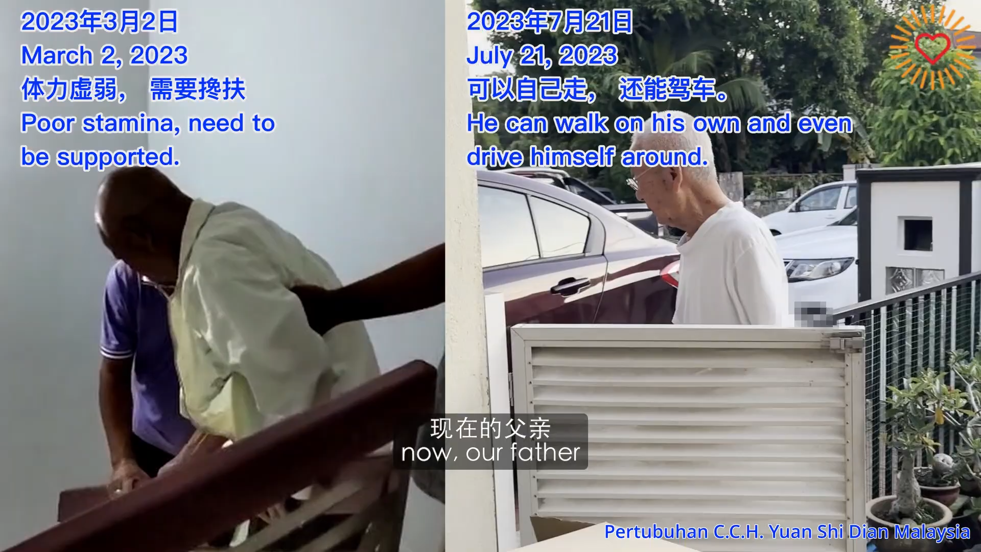 《Recovery Driven By Family Love and Support ~ A Home Filled With The Ways Of YSD(Malaysia)》 My 82-year-old father had a problem with frequent urination. But this problem hasn’t caused him much trouble in his daily life. However, everything changed on the evening of February 28, 2023. That night, my father suddenly started to have urinary incontinence, unable to be controlled. We immediately Antui the Sacral Vertebrae Yuan Shi Dian for my father. and applied Wenfu with red bean bags. On March 1, 2023, My father began to have fever, sore throat, cough, and a lot of phlegm. It seemed like he might have caught with the flu. It was flu season at that time. This made us even more worried about our father’s health condition. On March 2, 2023, Our father’s stamina was very poor. Every time he tried to speak, his voice was so faint and feeble. He started refusing to eat. Even his favourite foods couldn't stimulate his appetite. Our father’s physical condition deteriorated rapidly. He was extremely weak and abnormally fatigued. It seemed like he was losing his spark for life. He was sleeping all day and night. During this period, We could only feed our father with ginger soup, ginseng soup and a little bit of plant-based milk. Our family members began to take turns taking care of our father 24 hours a day. Due to his extremely poor stamina, we know that we must primarily use internal and external heat sources to ameliorate his heat energy deficiency. We used red bean bags to Wenfu large areas of his body. We persistently accompanied him for sunbathing every day. We used 20 grams of dried ginger slices to boil ginger soup. At the same time, we used 20 grams of dried ginseng slices to boil ginseng soup for our father. Apart from ginger soup, ginseng soup and plant-based milk, he was not able to consume any other type of food. At the same time, We also let our father swallow ginger pills, 8 pills at a time. As for Antui, due to our father’s poor stamina, we know that at this point of time, the primary treatment should be to apply external and internal heat sources; Antui is secondary. We were just holding our father, gently Antui and soothing the Yuan Shi Dian along the spine and seven regions of the body. On March 3, 2023, my father was no longer affected by urinary incontinence but his flu symptoms were still severe. He said that he had a serious sore throat, so he didn’t want to swallow food. His coughing and excessive phlegm problems have gotten worse. We continued to treat our father using the methods of Yuan Shi Dian. We didn't use any medication at all. Over the next 10 days or so, Our father still refused to eat. His stamina declined and continued to weaken further and further. He was skin and bones. His voice was extremely weak when speaking. He was abnormally fatigued. He was sleeping all day and night and just relying on ginger soup, ginseng soup and plant-based milk to continue sustaining his life. By observing our father’s symptoms, we discovered that our father’s condition has deteriorated to the stage with manifested symptoms of life threatening mentioned in the theory of Yuan Shi Dian such as: loss of appetite, dramatic weight loss, lack of facial luster, weak voice, general weakness, etc. occurred simultaneously. These are indicative that heat energy is almost completely depleted and life is threatened. #CCHYSDMalaysia #原始点 #YuanShiDian