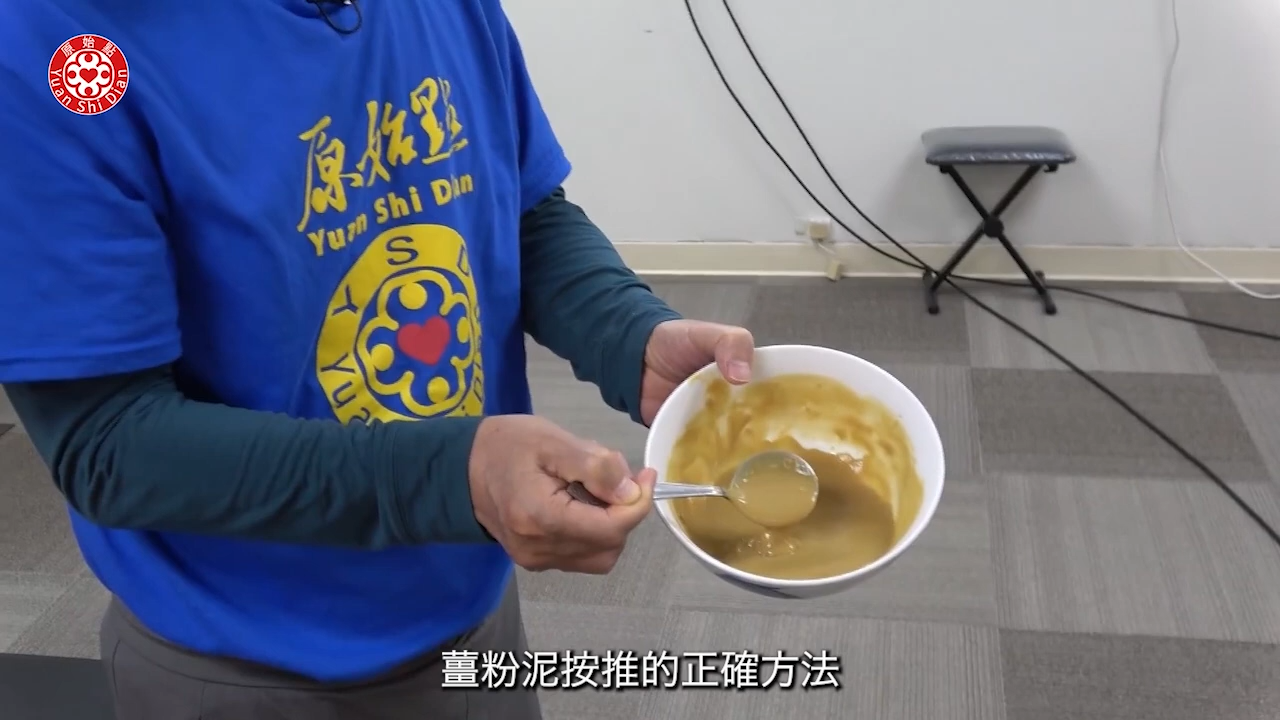 Luna: 张医师今天要为我们示范,姜粉泥按推的正确方法;这个浓度大概是这样,那我们今天这个示范就请志工(),👏