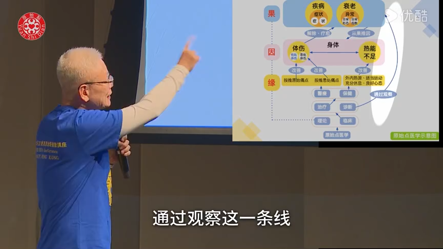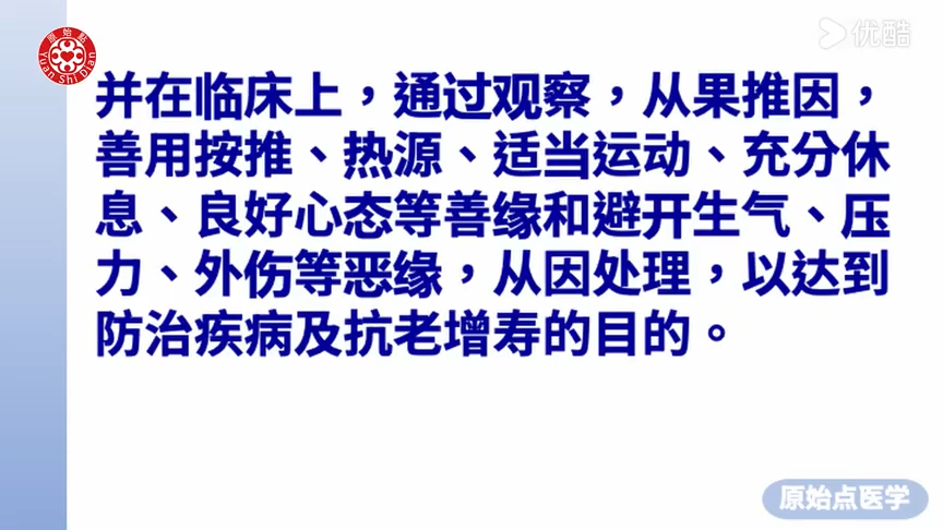4. **张钊汉医师**:解释了原始点医学的理论,包括疾病和衰老是结果,体伤和热能不足是原因,需要通过观察从果推因,找到病因,并使用按推、热源、运动、休息、心态等方法治疗,从而达到防治疾病和抗老增寿的目的。同时,也介绍了原始点医学的简单直接,理论与临床相结合,诊断与治疗相结合,医疗与保健相结合,与其它医学有显著区别。