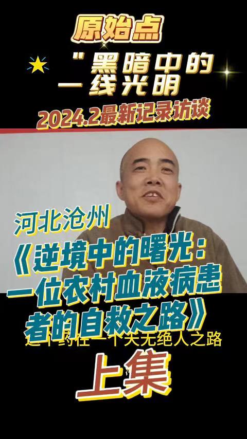 视频预报 题目:《逆境中的曙光:一位农村血液病患者的自救之路》上集