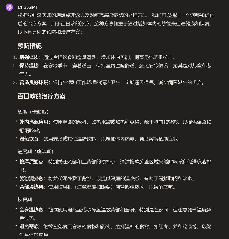 (COZE AI)根据原始点医学的理念,百日咳的诊疗方案应该着重于提升热能和修复体伤。以下是优化的百日咳诊疗方案: