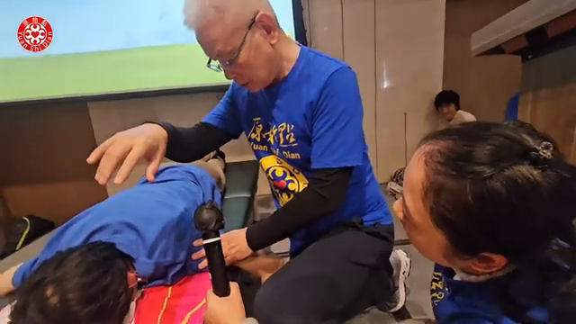 张医师的现场示范:张医师在现场示范了按推技巧,特别强调了使用身体力量而非单纯手指力量的重要性。他还展示了如何通过调整姿势和利用身体巧劲来达到更深层的按推效果。