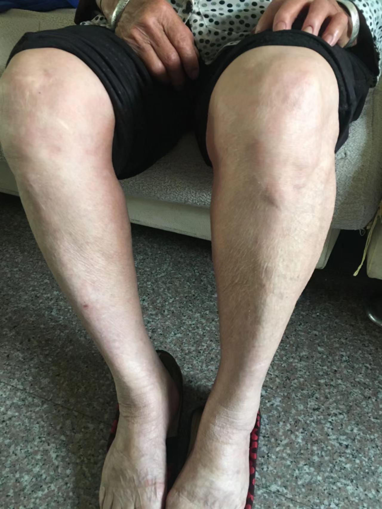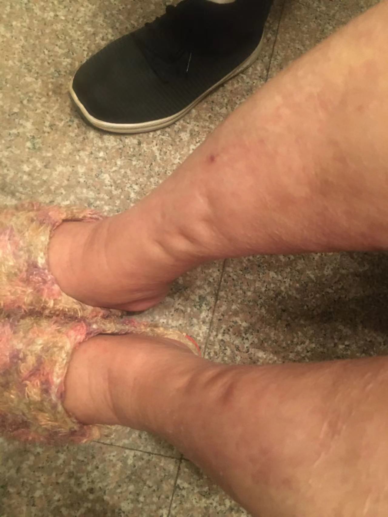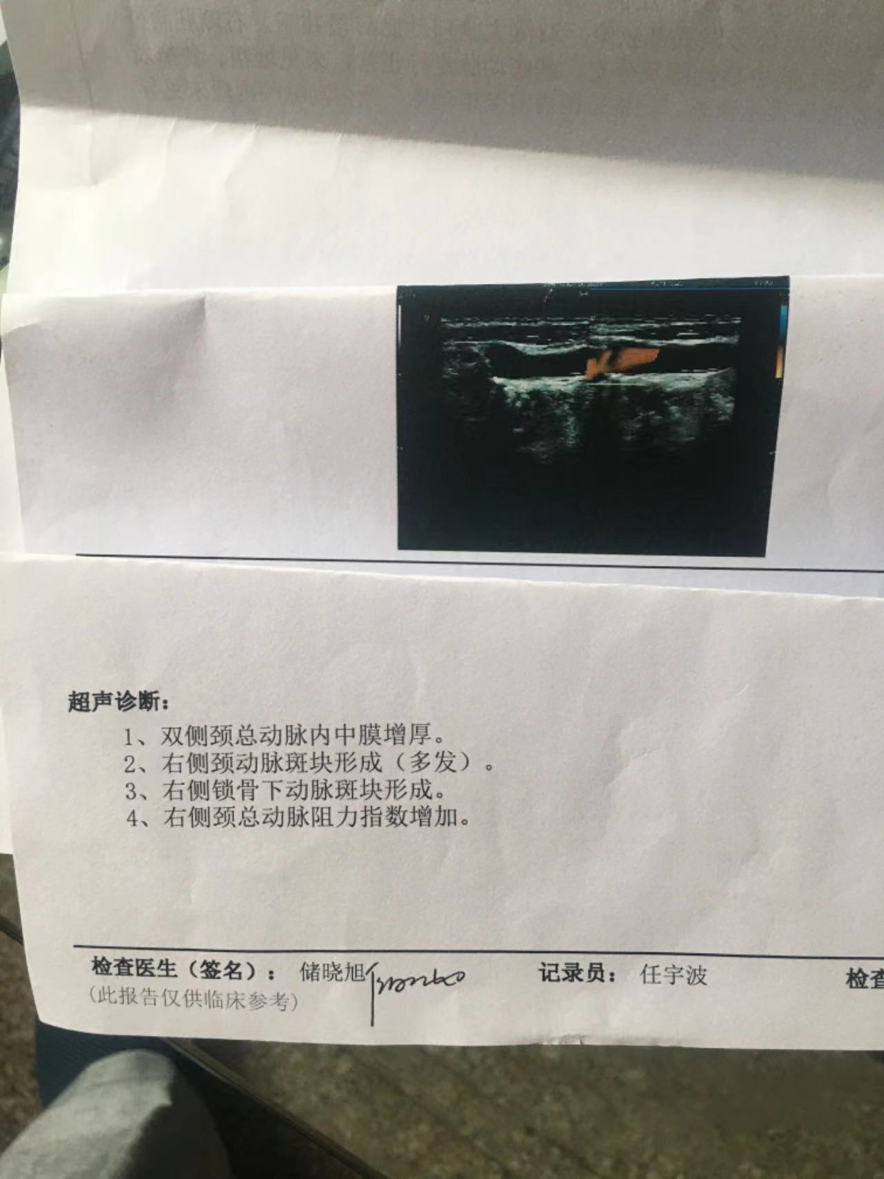 4 ,24小时浑身淌汗。 5 , 经检查,颈动脉血管有血栓。 6 ,膝关节到脚背泡肿。