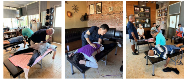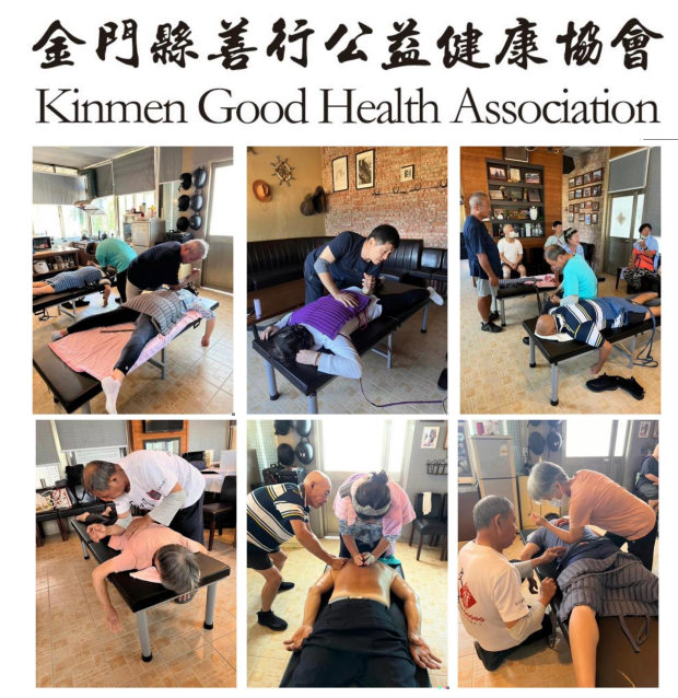 加演讲会议的人员除了金门乡亲外,还有来自大陆、东南亚等地区将近 800 人听讲,大家都深受其益,并且张医师留下志工来培养金门志工达 30 多人,这几年来帮助患者达1000 多人次。后来因“新冠疫情”停顿了两年,疫情过后从 2022 年开始,我们持续对外开放,每周日常态性进行原始点体验和手法教学,常驻志工有 10 位,感谢志工们的爱心精神,无私奉献,常常利用个人宝贵的时间对外提供按推体验服务。同时,也非常感谢陈修平师兄和宋崇源师兄大力支持,促成协会的成立,而且不定时来到金门莅临协会指导,感恩!