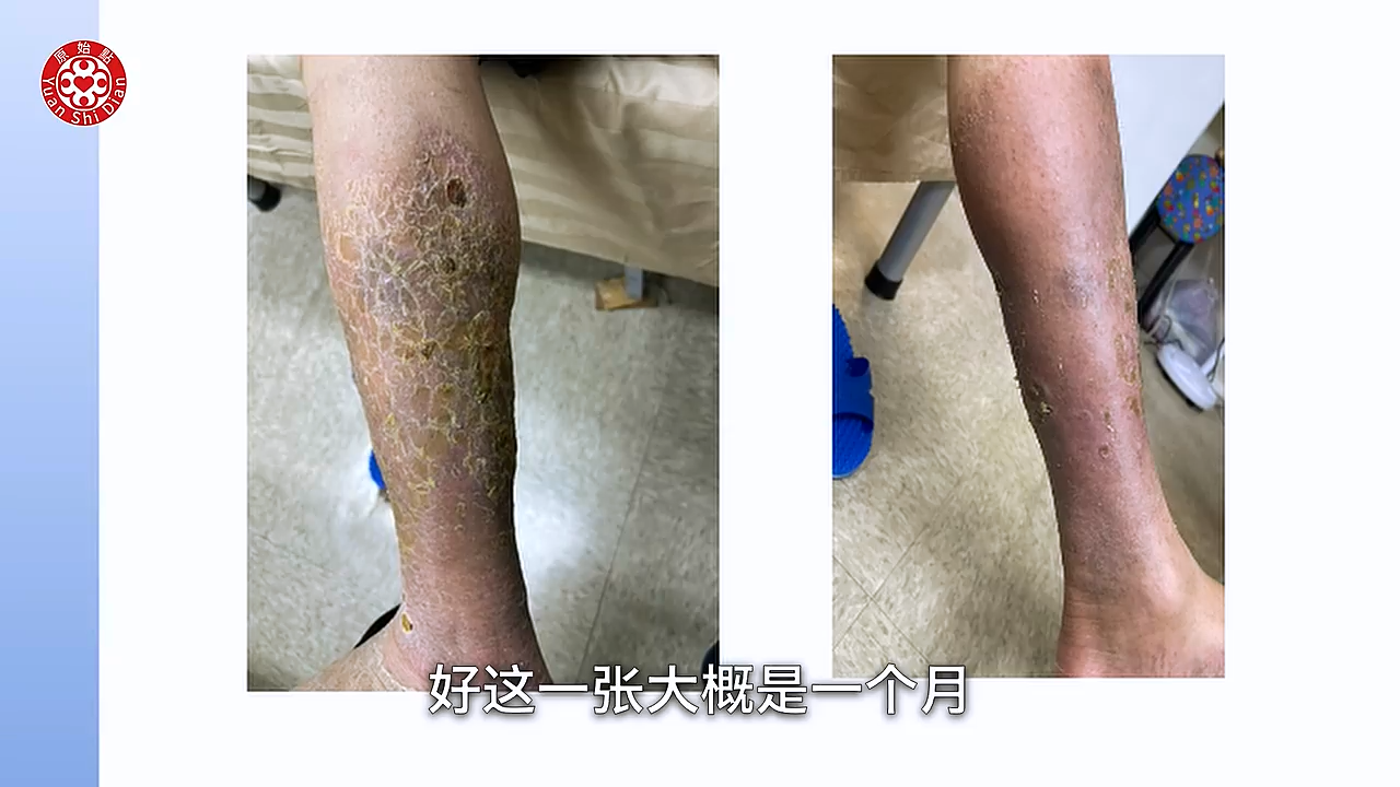 最终,经过一段时间的调理,患者的皮肤状况显著改善,溃烂和硬皮消失,皮肤逐渐恢复正常。