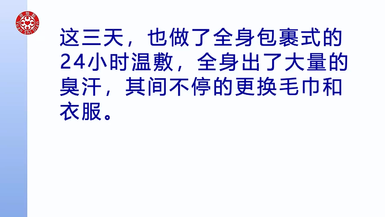- Luna(他的伴侣)对他进行了全身按推,前三天卧床并进行24小时温敷,出了大量臭汗。