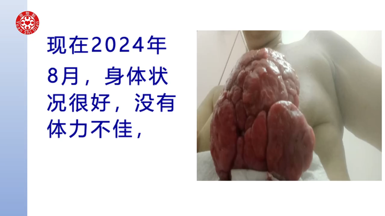 现在2024年8月,身体状况很好,没有体力不佳,现在周围都没有痛点,我有用姜粉泥去按推周围,之前有痛点,后来按久了就没有痛点了。每天都有吃姜粉泥,都有追看YouTube每周新视频,有什么新方法我也跟着照做,没人帮助都是自己通过视频学习。现在偶尔有组织液流出来,然后肿瘤旁边的乳房都是软的,已经3年多了,两年前喷血水很多,隔两三天就喷一次,每次100-200ml的血水。幸好两三个月就停止没留这么多血水了。家里人建议做化疗手术,我选择