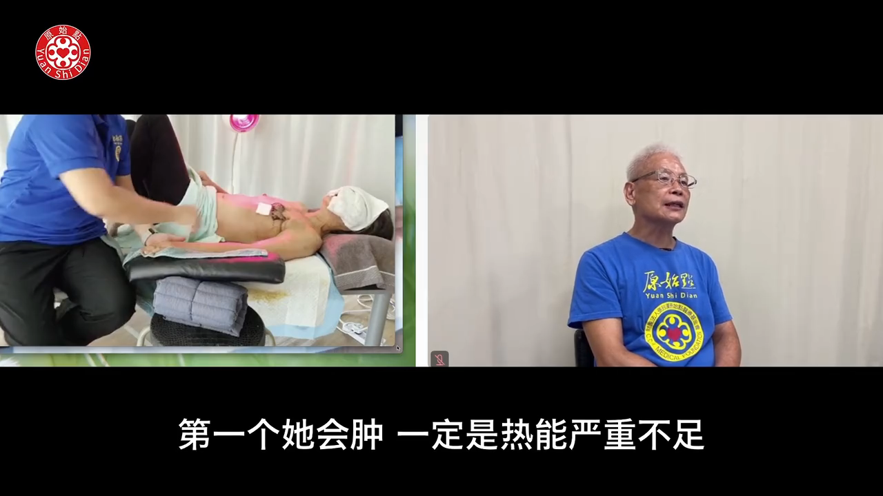 我还是整体讲一下,这个很明显的是重症患者,也毫无疑问,因为已经破裂了。然后,第一个她会肿,一定是热能严重不足。🔥 然这样的患者,原则上是以热源为主,按推为辅,先确定整个治疗方案。热源当然是以按推姜粉泥为主。那整个的按推我相信一般如果像乳癌患者来包括水肿,我们的做法当然患处周围 (30:14) 那个乳癌,那个患处周围一定会涂姜粉泥,包括腋下。那这些按法就是我们之前教的,这个也没有什么特别。