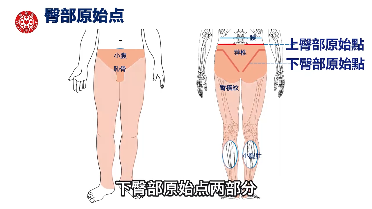 (11:04) 其位置是以胯骨的上下沿 分为上臀部原始点 下臀部原始点两部分