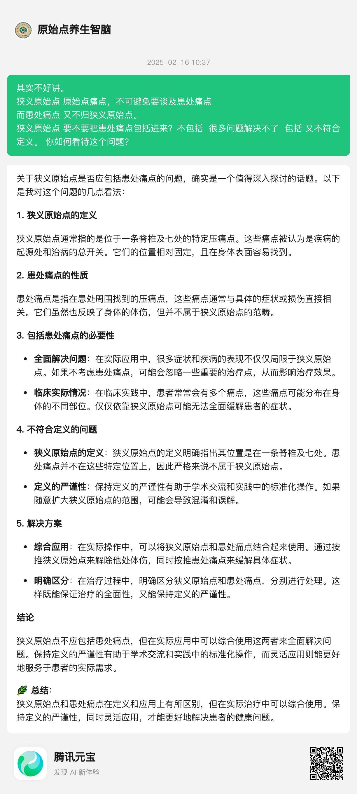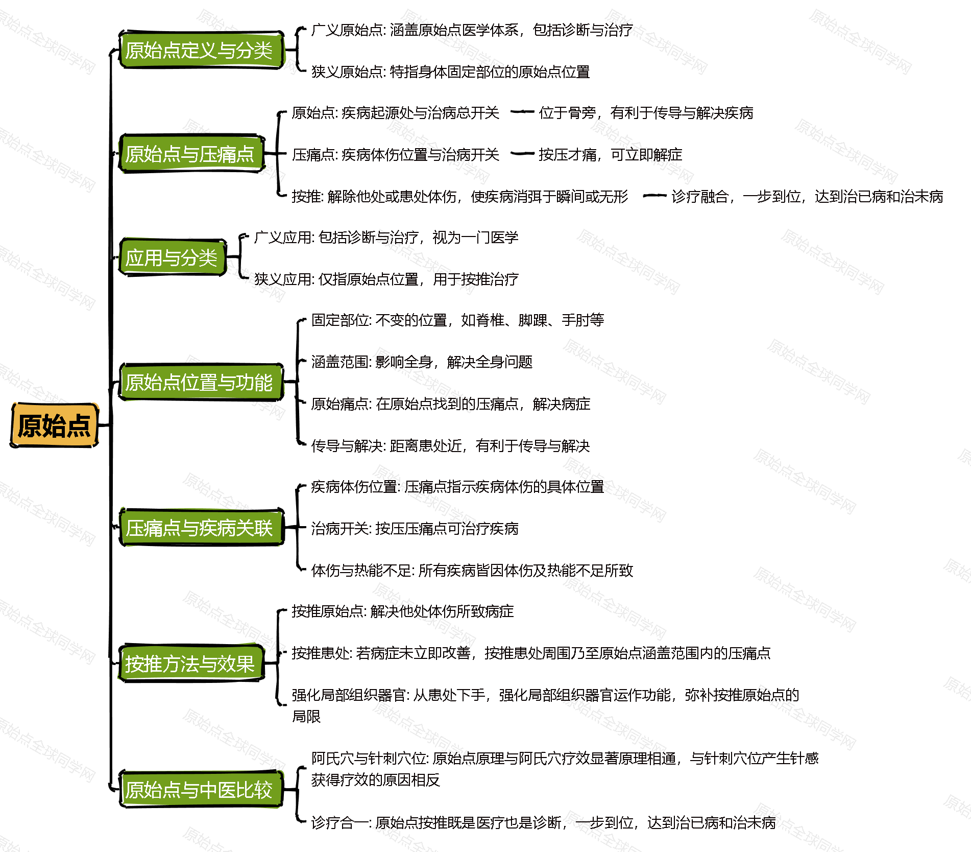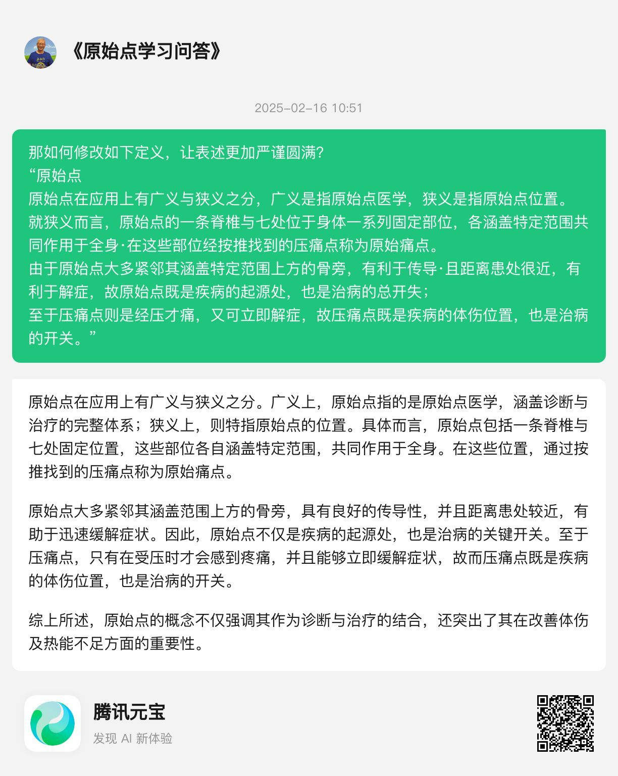 **总结**:原始点通过固定位置按推压痛点,实现诊疗一体化,快速解除病症。其核心在于“以痛为引”,结合自愈力激发,形成了一套独特的医学体系,兼具中医智慧与现代实用性。