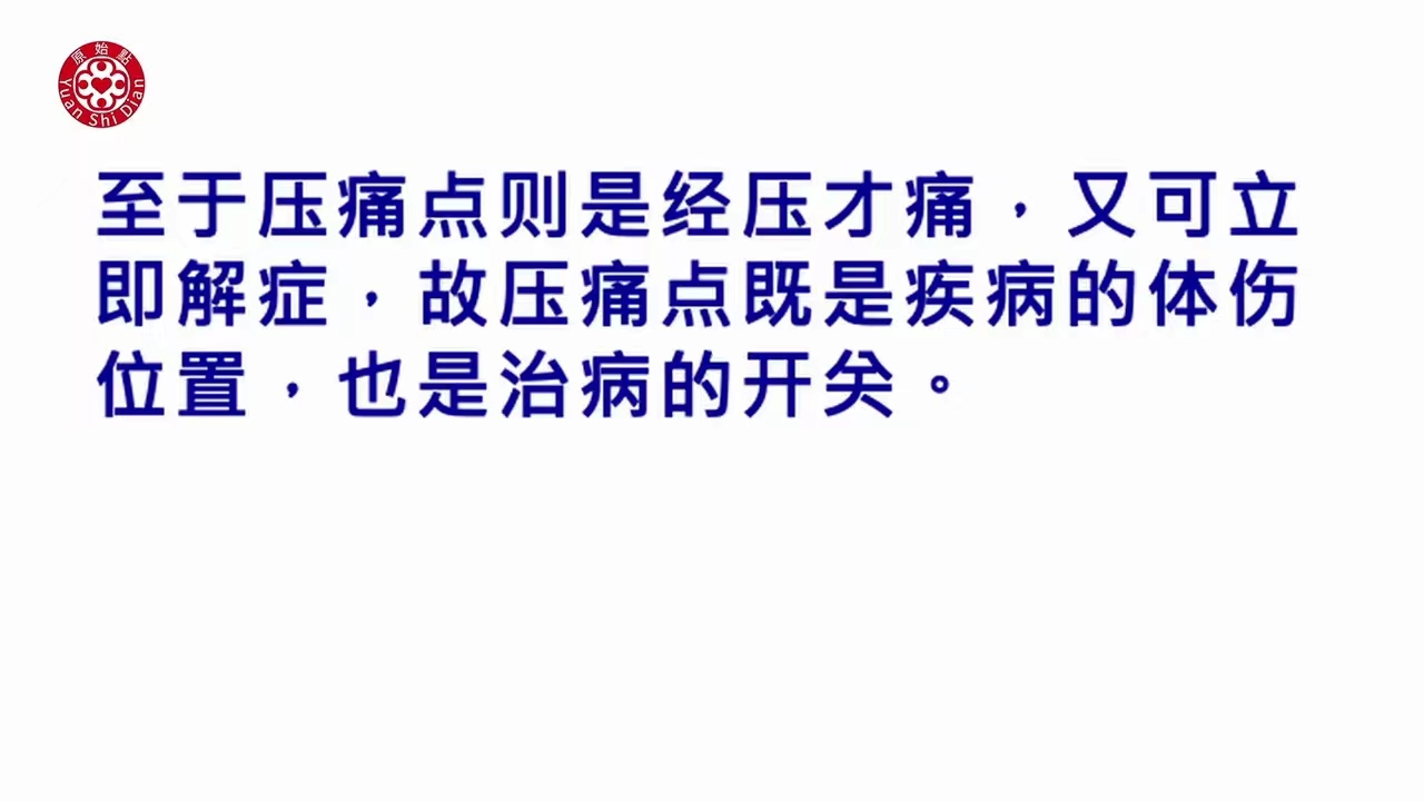 至于压痛点则是经压才痛,又可立即解症,故压痛点既是疾病的体伤位置,也是治病的开关。