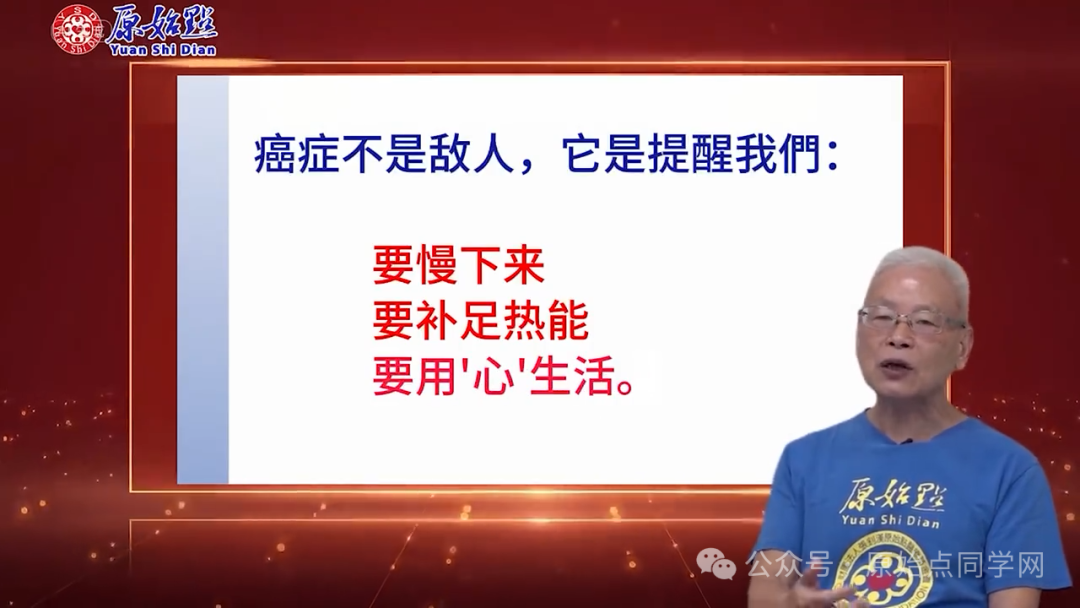 • 癌肿瘤如同白发、皱纹,是身体提醒"热能不足+体伤"的警示灯。
