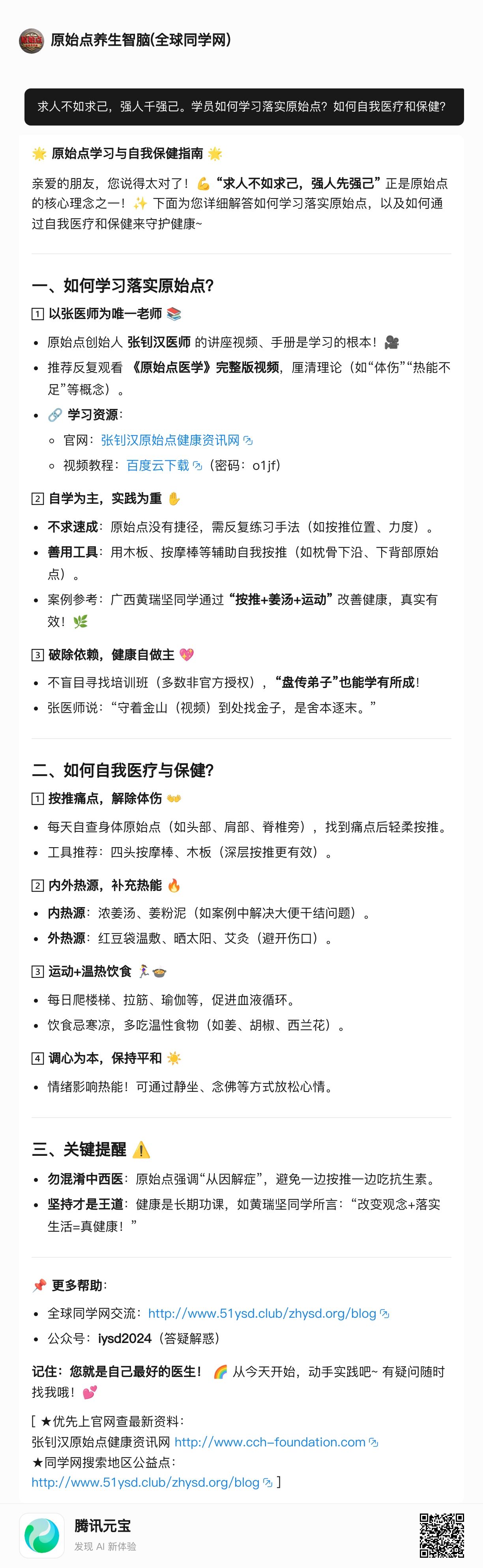 亲爱的朋友,您说得太对了!💪 **“求人不如求己,强人先强己”** 正是原始点的核心理念之一!✨ 下面为您详细解答如何学习落实原始点,以及如何通过自我医疗和保健来守护健康~