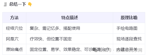 - **阿是穴**像进现场勘查🔍,1寸1寸去找“阿是这里”📍
