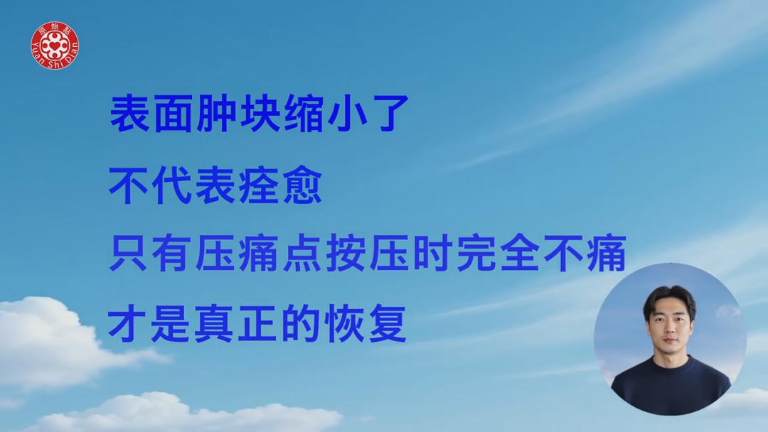 表面肿块缩小了不代表痊愈,只有压痛点按压时完全不痛才是真正的恢复。