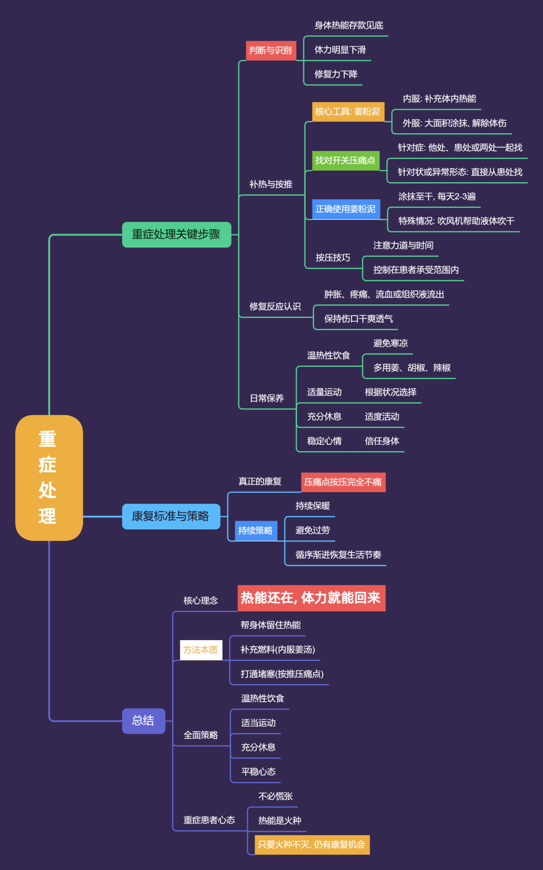 #重症处理#热能#姜粉泥#按推#体力#修复力#压痛点#温热性饮食#红豆袋#暖贴#电热器#康复标准#重症#原始点