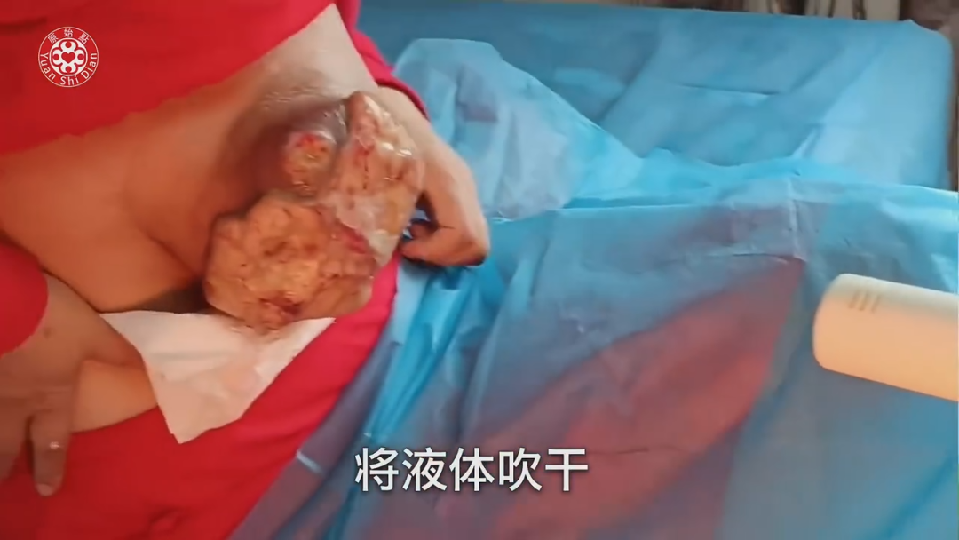 肿瘤破口处理:用吹风机🌬️吹干液体加速修复