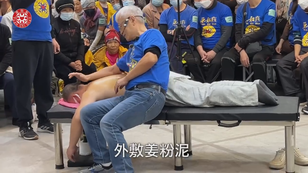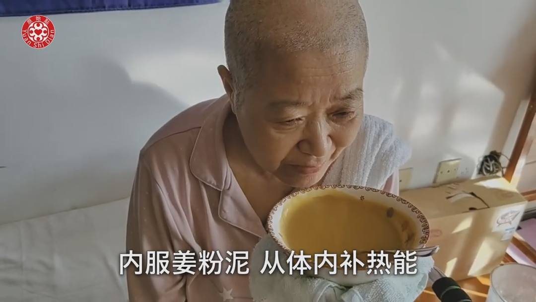 内服姜粉泥从体内补热能, 外敷姜粉泥大面积涂抹按推在他处或患处, 解除体伤, 把热能送进身体深层。