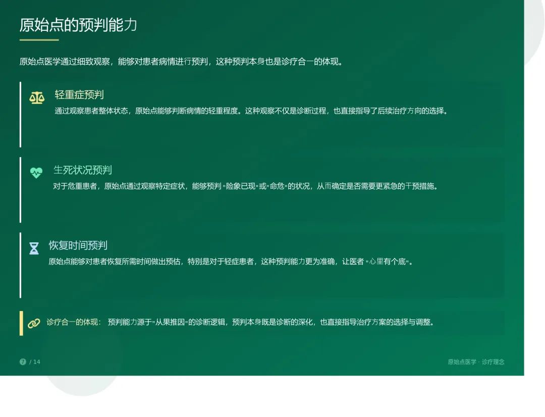 4. **预判疾病的严重程度**:🔮 原始点医学能够预判疾病的严重程度和治疗效果,这也是诊疗合一的一部分。