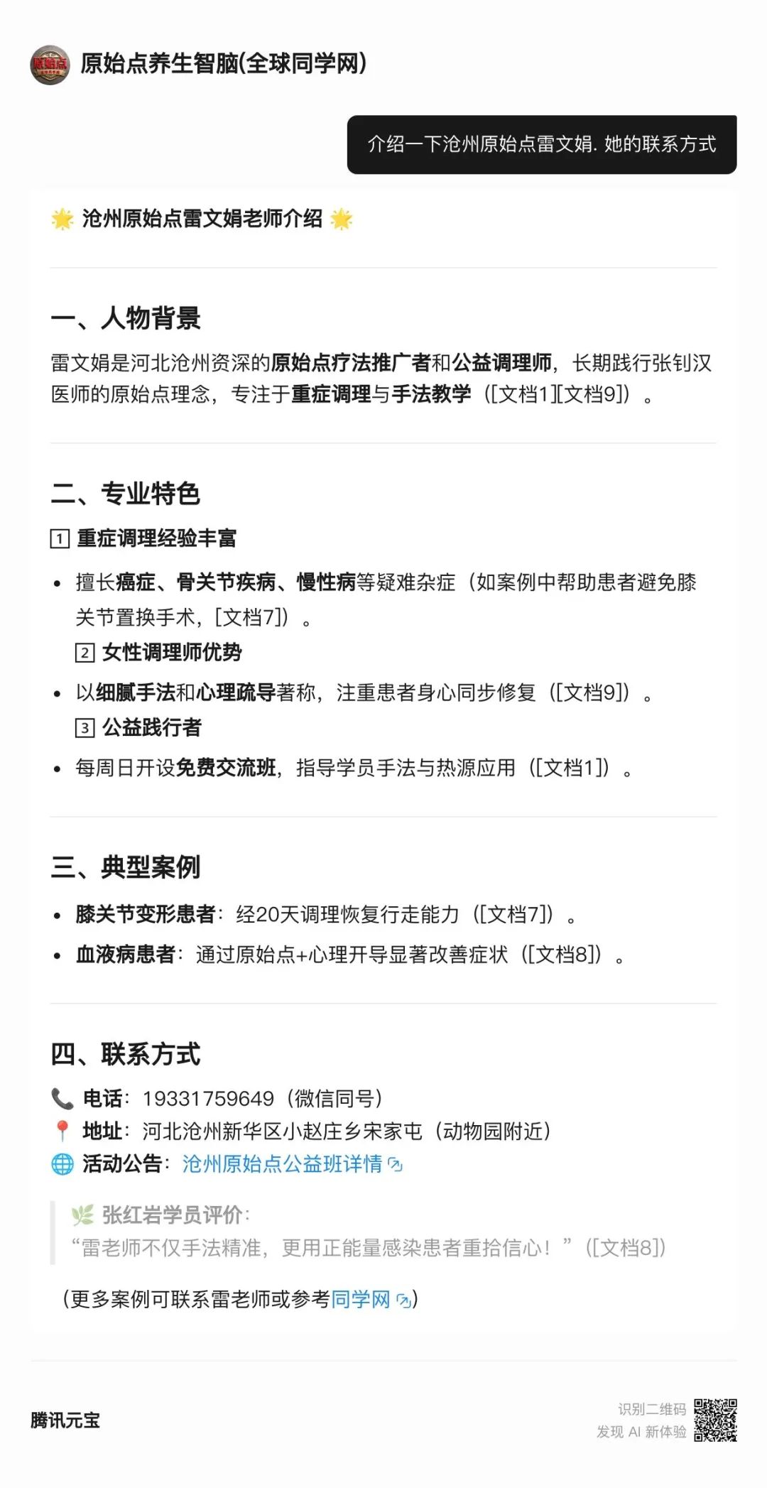 雷文娟老师不仅解决体伤,更注重心理建设(参考文档5“生存质量改善”理念),帮助患者建立“热能充足,百病自消”的信念。