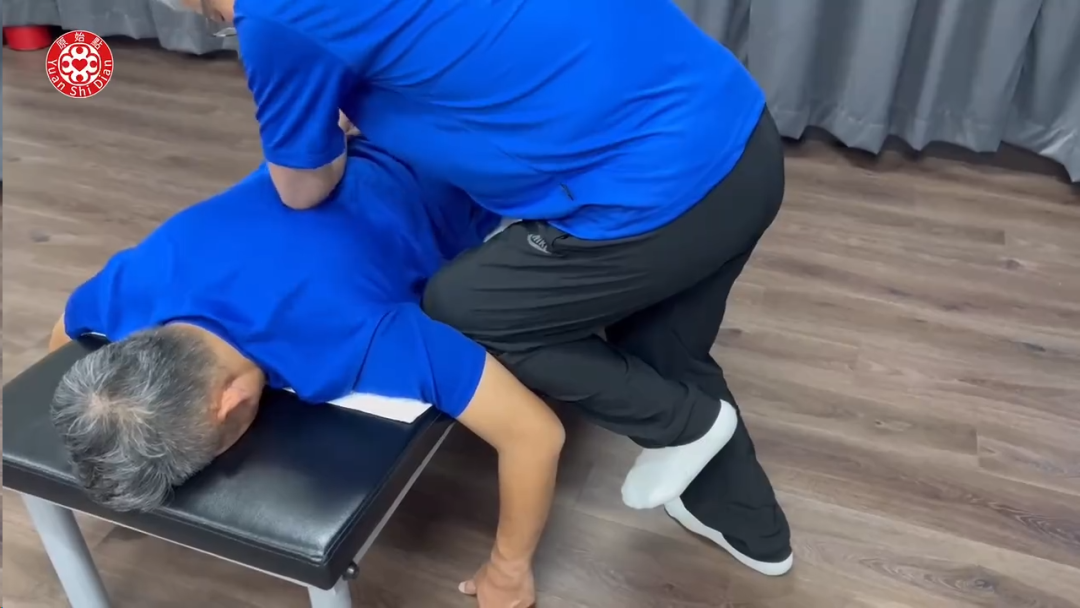 手肘角度严格 90度垂直发力,确保力道直达深层筋伤。