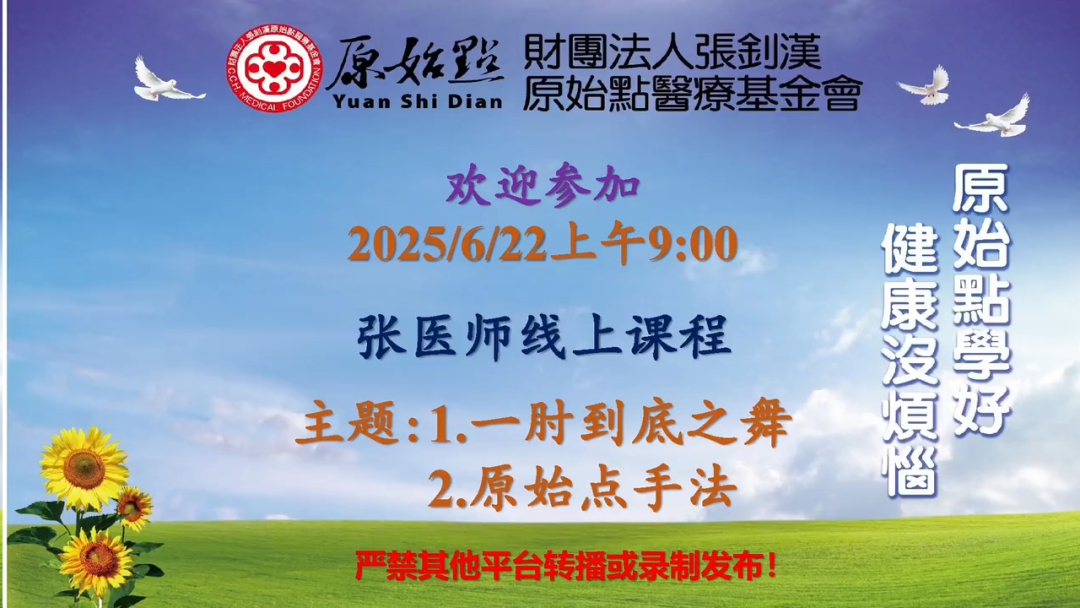 2025/6/22 原始点 張醫師線上課程 主題 : 1.一肘到底之舞 2. 原始點手法