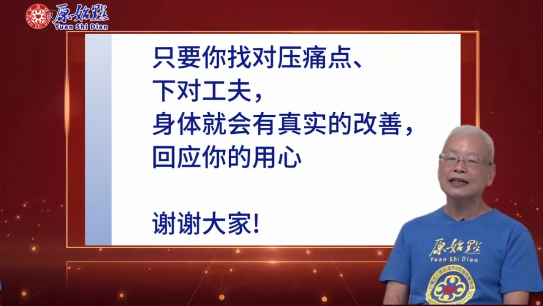 这就是原始点,简单但不随便,直接但不粗糙,只要你找对压痛点,下对功夫,身体就会有真实的改善,回应你的用心。谢谢大家。