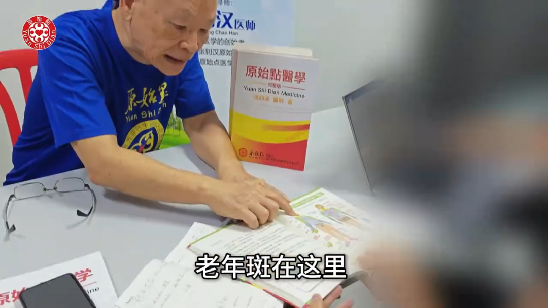 我问你, 中医有没有讲老的治疗也没有真的。 他就望闻问切都是要讲疾病, 但是老呈现在脸, 我一看我就知道按哪里。 比如你这里有斑, 我就按这里。 我也是有啊, 但这些理论都是到最后一路进步到这几年才完善。 所以从解决疾病到老一路这样走过来, 它是这样。