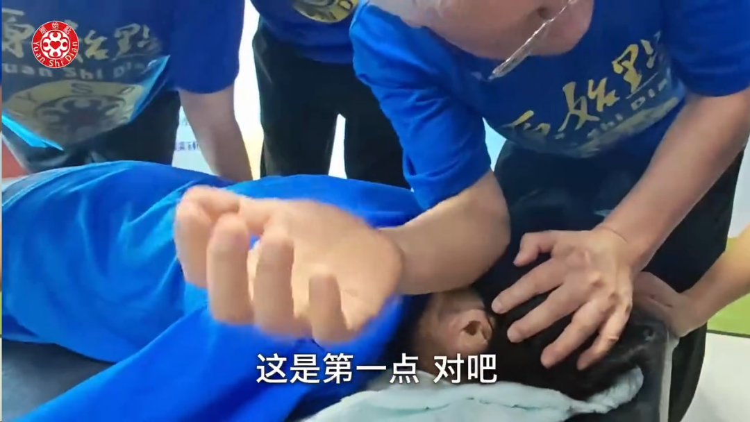- **第一点**:枕骨与乳突骨交汇处,掌心向上斜插顶入📍。