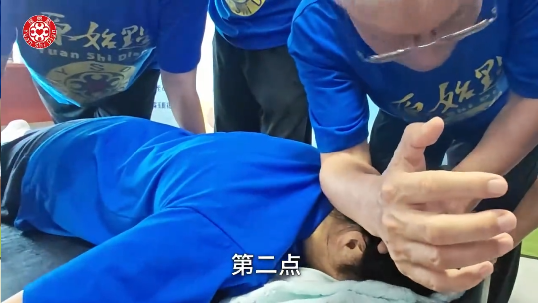 比如他的手法 我发现下去的时候 他就开始硬了 然后最 做不出来大部分是颈椎 颈椎是第一个 第一点是这样 对不对 就是枕骨最后一点 第二点要怎么样 要翻这样 很多人都没怎么翻 然后第三点要几乎盖下去 对不对 第四点要收回来 有没有 这样不会 如果你做对根本不用看 一定会做的出来 但我刚刚看 真正做出来的 还是比较少数 做不出来居多