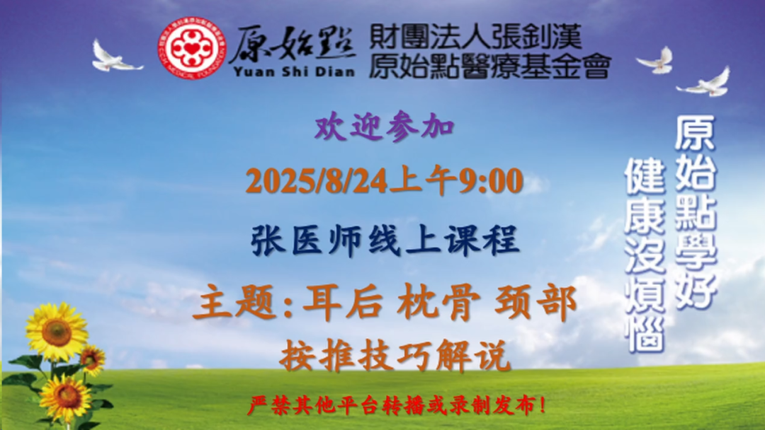 2025/8/24 张医师线上课程 主题: 耳后 枕骨 颈部 按推技巧解说
