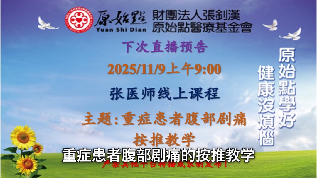 📺 **(25:08)** 主题是:重症患者腹部剧痛的按推教学!内容实战又实用!千万别错过!我们下周再见!👋