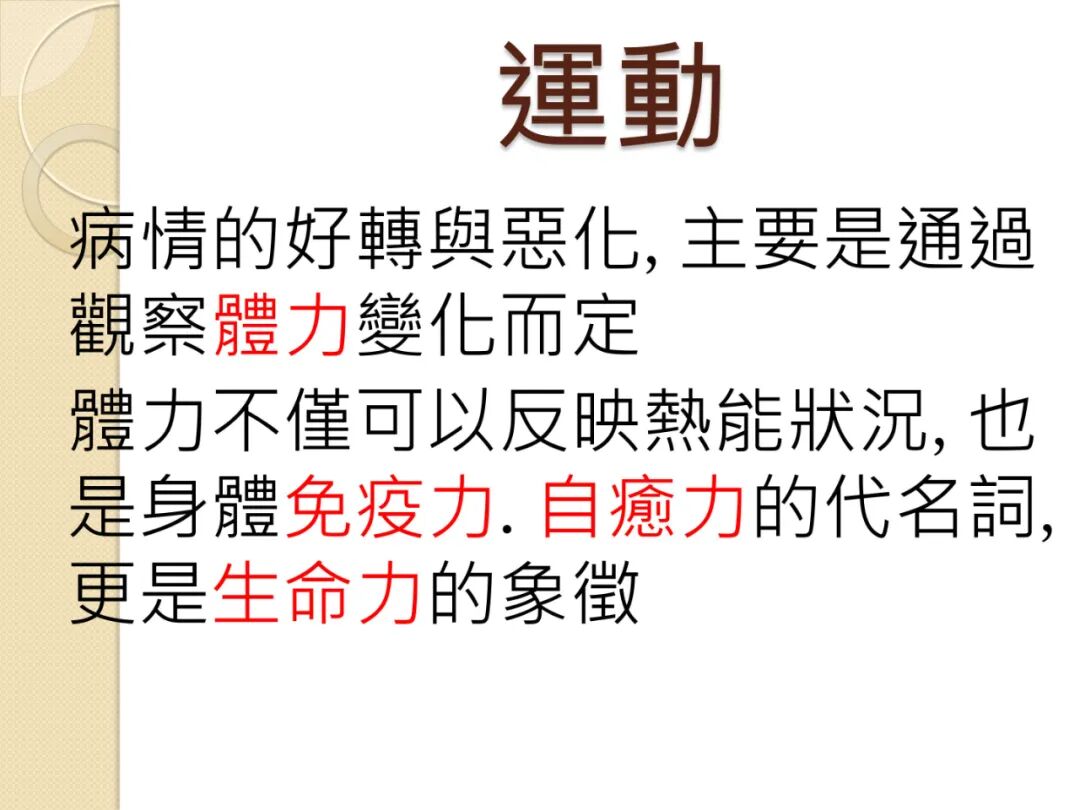 :体力是免疫力、自愈力的象征,是判断病情的关键。 - 日常生活整合