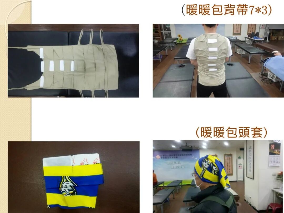 :教授温敷工具(如红豆袋、暖暖包)和姜汤熬煮方法。 -