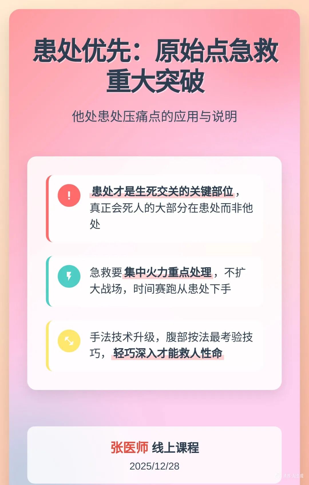 ## 📚 2025/12/28 张医师线上课程要点总结