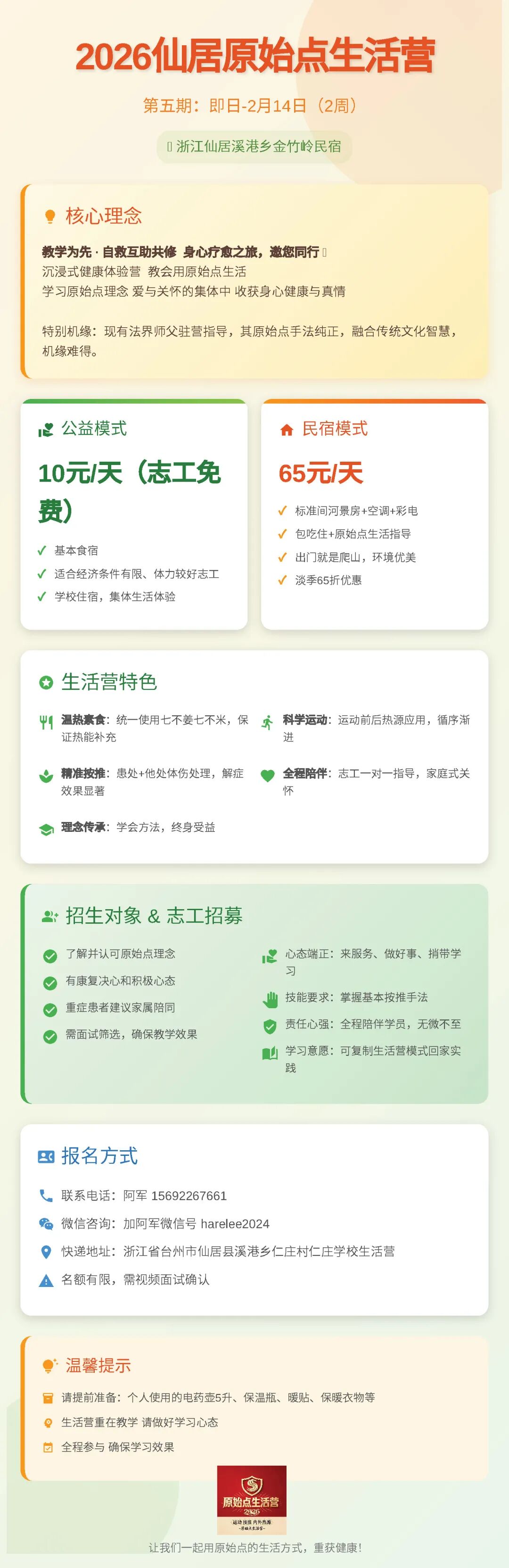 2025仙居原始点生活营招生&重症调理志工招募简章