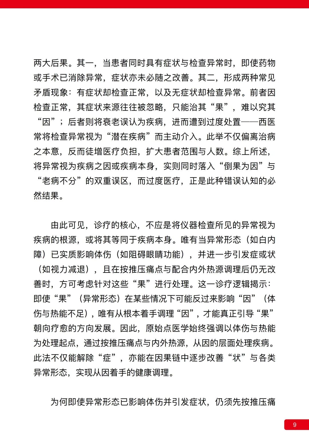 原始点医学认为,不论是检查结果,或身体内外所呈现的各种现象,皆属“果”而非“因”,其根源仍在于难以直接检测的体伤与热能不足。