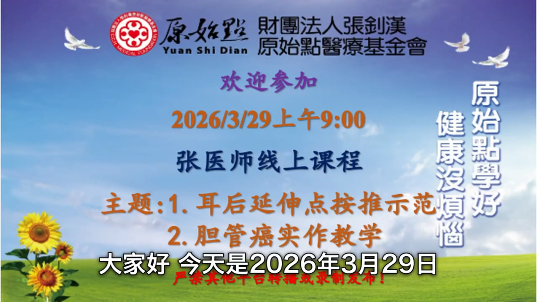 2026/3/29 张医师线上课程 主题: 1.耳后延伸点按推示范 2.胆管癌实作教学