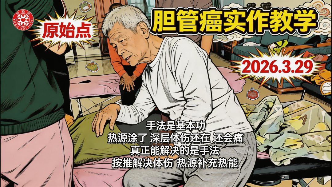 2026年3月29日的胆管癌实作教学,张医师通过一位重症患者的现场调理,为我们上了一堂关于 “如何用原始点思维处理深层体伤” 的实战课。